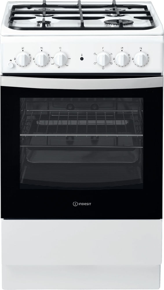 Cechy wolnostojącej kuchenki 50x60 Indesit: dwa palniki. Kolor biały. Zasilanie elektryczne. Tradycyjna metoda gotowania. 50 cm szerokości.