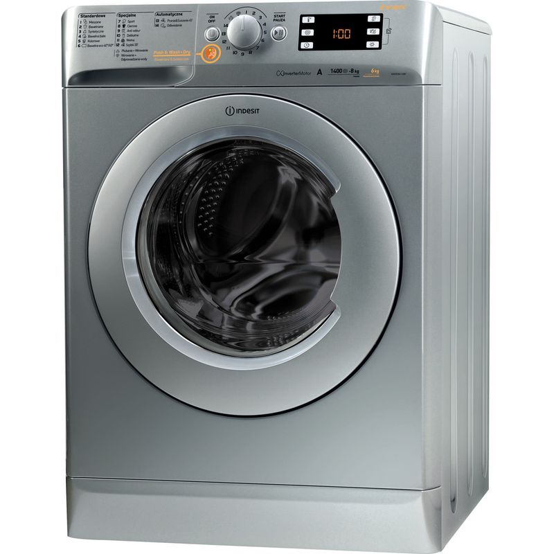 Cechy pralko-suszarki wolnostojącej Indesit: wyjątkowa pojemność bębna wynosząca 8 kg. Przestronna pojemność suszarki wynosząca 6 kg. Szybkie i skuteczne wirowanie z prędkością 1400 obrotów na minutę. Kolor srebrny.