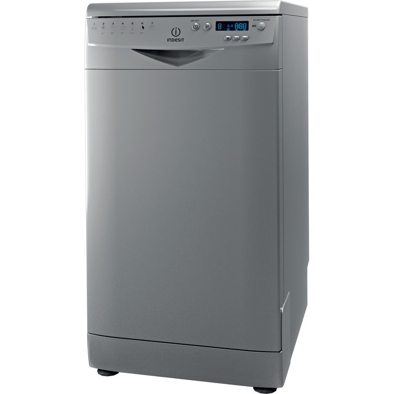 Cechy zmywarki Indesit: 45 cm szerokości w połączeniu z wyjątkową ilością ustawień oraz niewielkim i kompaktowym rozmiarem pozwalają cieszyć się niezbędną ilością miejsca, zarówno wewnątrz, jak i na zewnątrz urządzenia. Klasa energetyczna A+. Niskie zużycie wody w połączeniu z oszczędzającym przestrzeń kompaktowym wzornictwem. Kolor srebrny. Wygodny minutnik odmierzający czas do zakończenia cyklu zmywania.
